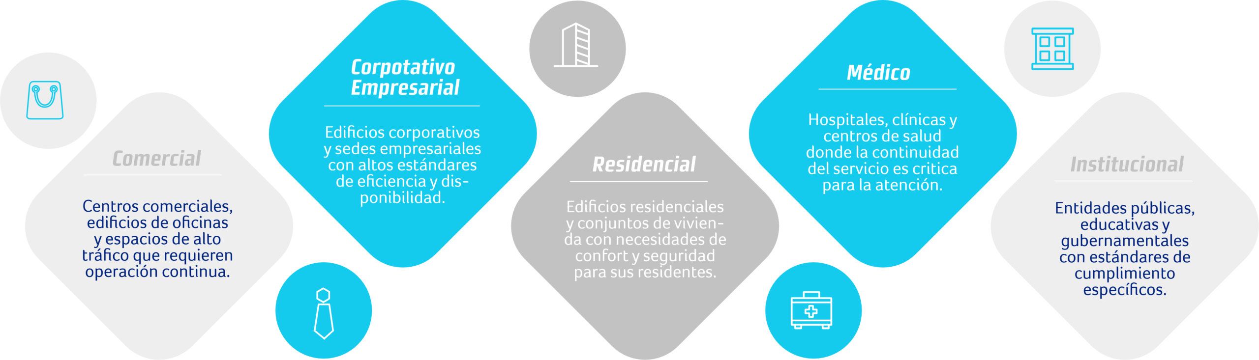 Experiencia probada en edificaciones de diversos sectores, adaptando nuestras soluciones a cada contexto operativo.